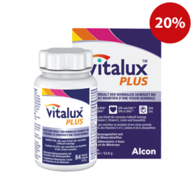 Unsere Lösung für Ihre Augengesundheit: Vitalux™ Plus, das tägliche Nahrungsergänzungsmittel mit Vitaminen und Mineralien. Enthält Zink, das zum Erhalt der normalen Sehkraft und der normalen kognitiven Funktion beiträgt.